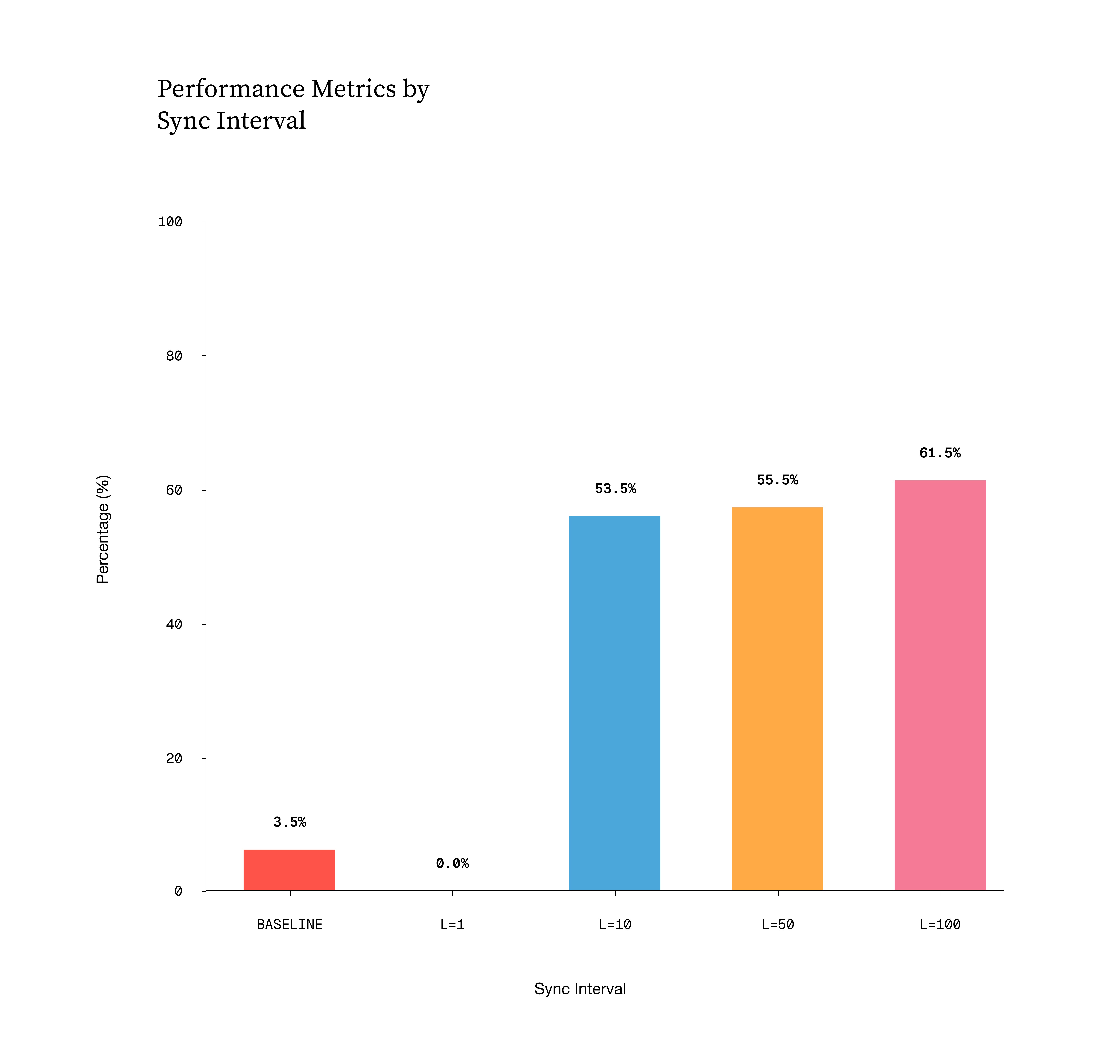 Instead of forcing the reference policy to refresh every step, we let it lag. We tested sync intervals of 10, 50, and 100 steps. In plain language, that means the model kept training for a while against rollout data generated by an older snapshot.